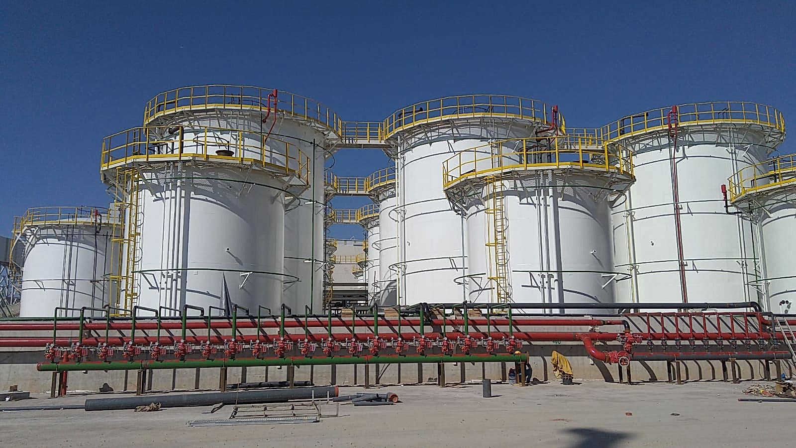 Toplam tutar: 34 Adet Sıvı Depolama Tankı (Toplam 52.000m^3), 25.000m Proses Borulama, 3000 Ton Çelik Ve Betonarme Altyapı İşleri